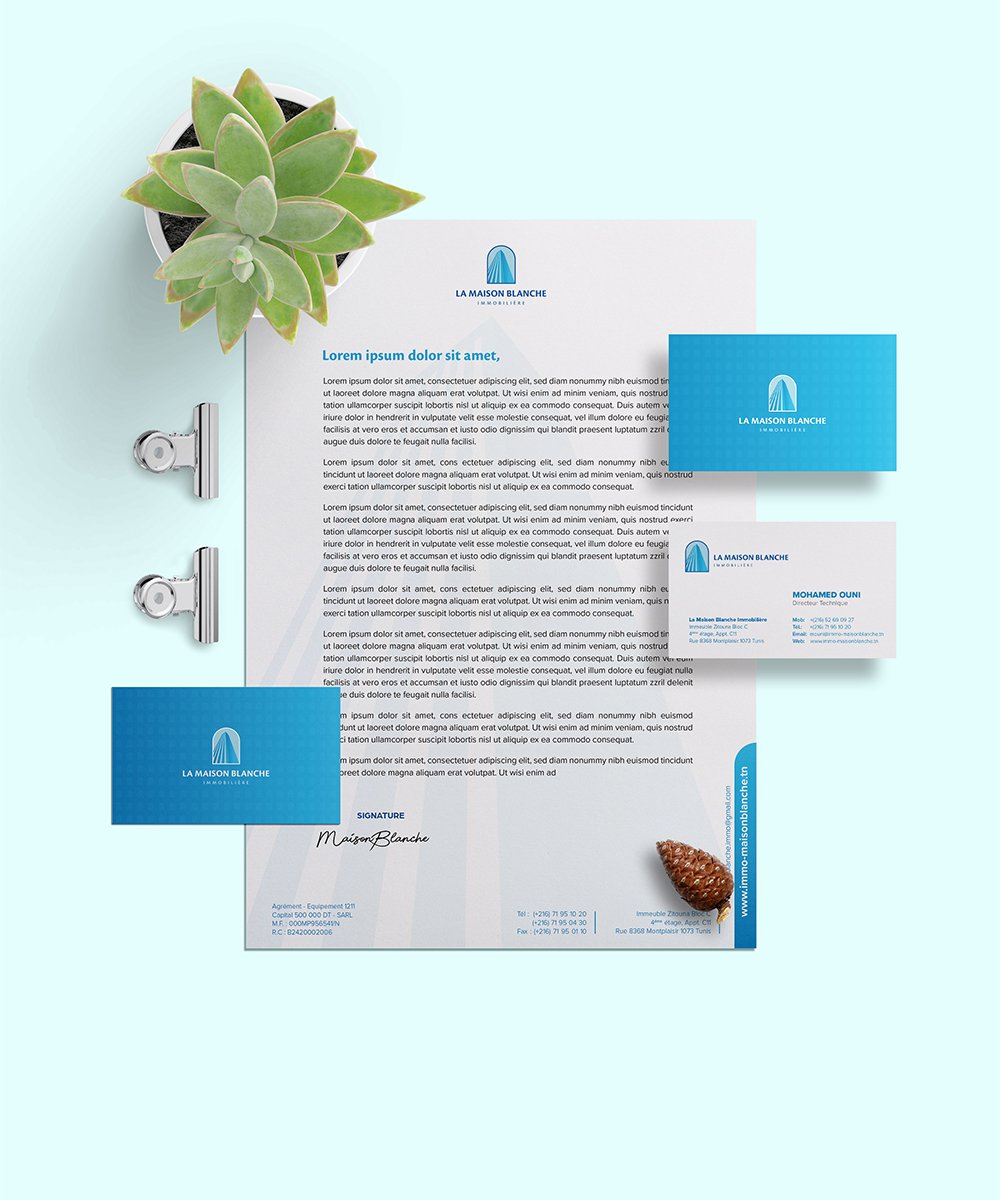 The challenge for La Maison Blanche was to develop a brand identity that accurately reflects its commitment to quality and innovation. The goal was to create a cohesive visual identity that stands out in the competitive real estate market while appealing to a discerning clientele.